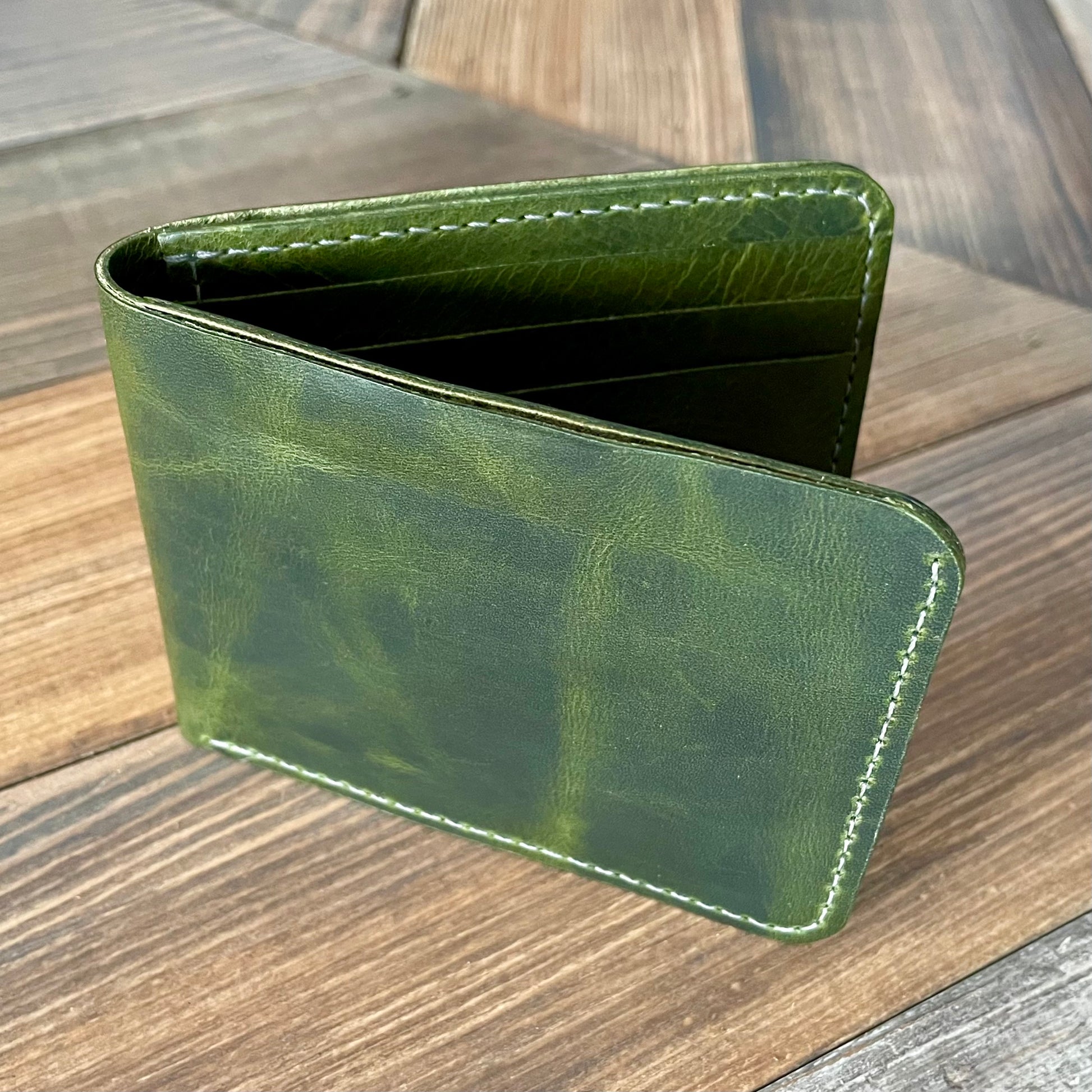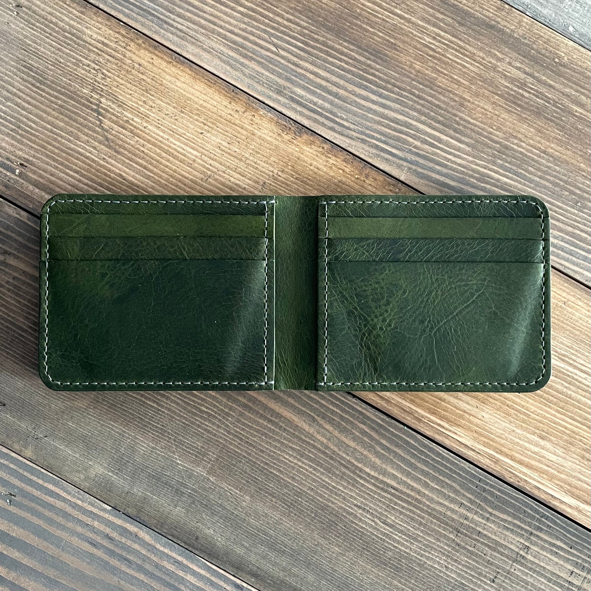 Each bi-fold wallet has 6 front slots with 2 pockets for extra cards behind, and a long cash slot.