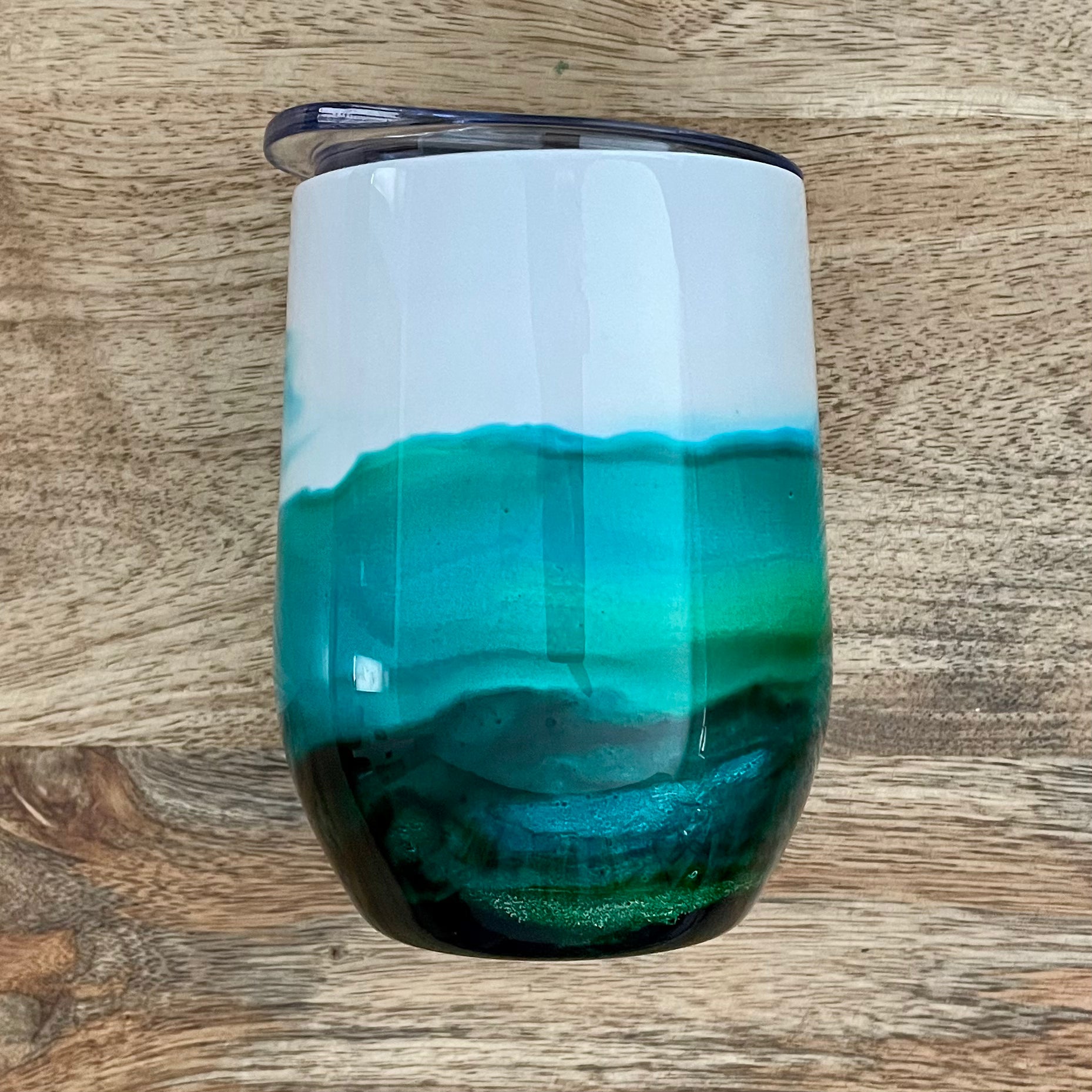 Hand painted with alcohol ink, finished with a durable, non-toxic, UV enhanced satin topcoat. Each tumbler is unique.