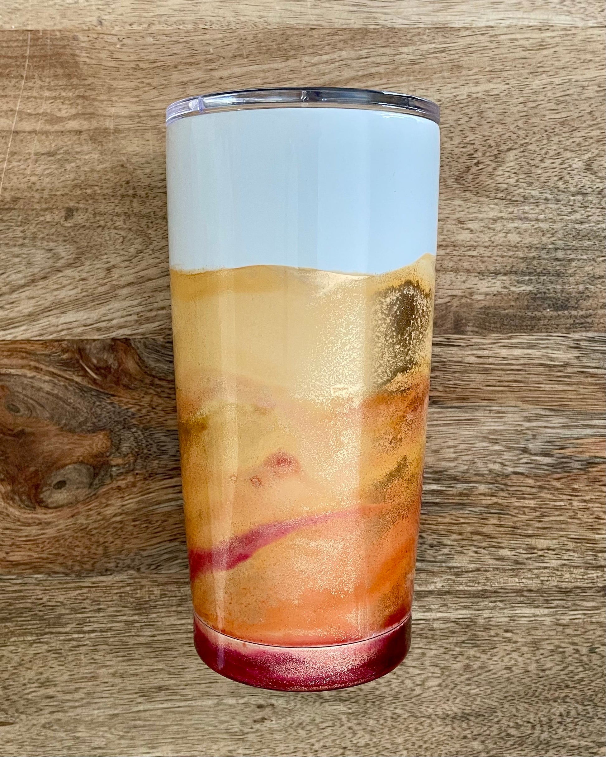 Hand painted with alcohol ink, finished with a durable, non-toxic, UV enhanced gloss topcoat.
