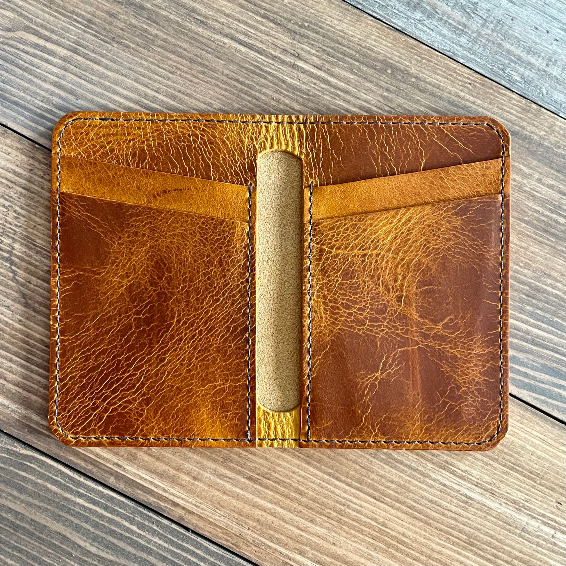 Double Card Holder with 4 slots for cards, plus 2 additional slots for extra cards or folded cash.